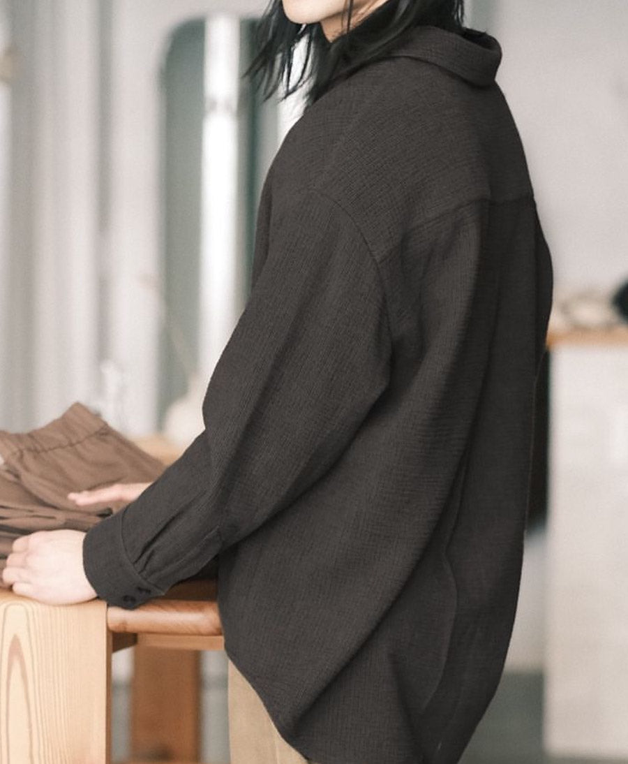 Das Dolman-Hemd wurde neu interpretiert, um eine universell schmeichelhafte und fliessende Passform mit einer strukturierten Haptik zu schaffen. Ein kastenförmiger, lockerer und entspannter Schnitt mit überschnittenen Schultern, Dolman-Ärmeln und einem leicht geschwungenen High-Low-Saum. Die Kellerfalte an der Rückenpasse verleiht dem Kleidungsstück Dimension. Ein wunderschönes Kleidungsstück fürs ganze Jahr.