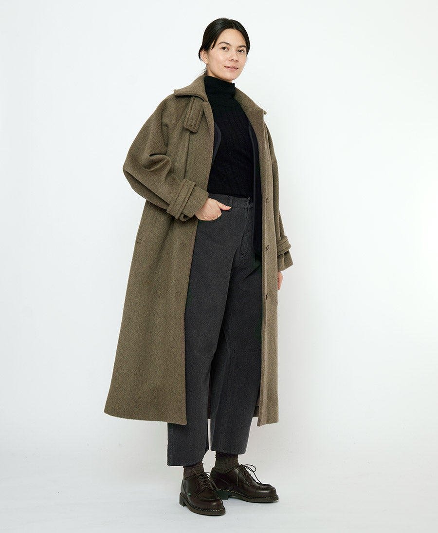 Langer Wollmantel "Balmacaan Coat" - Olive Gray