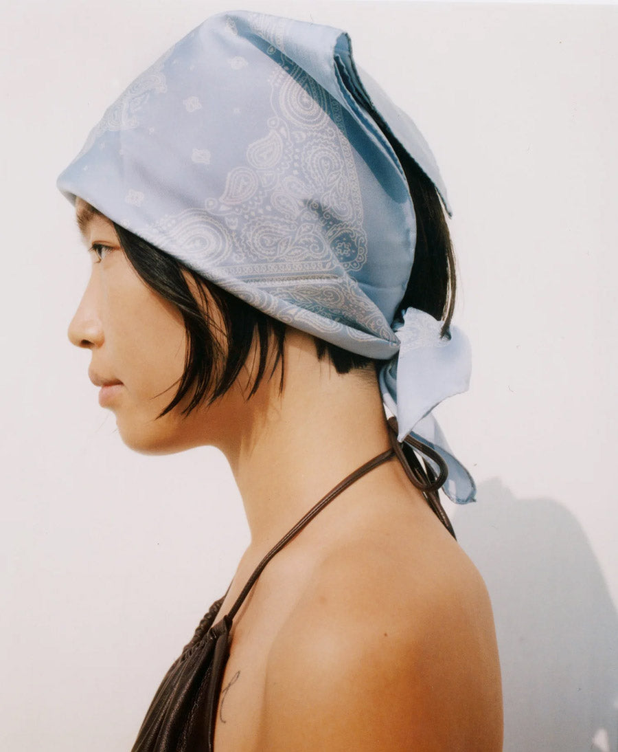 Seiden-Foulard "Minimal Bandana Silk Scarf" - Hellblau