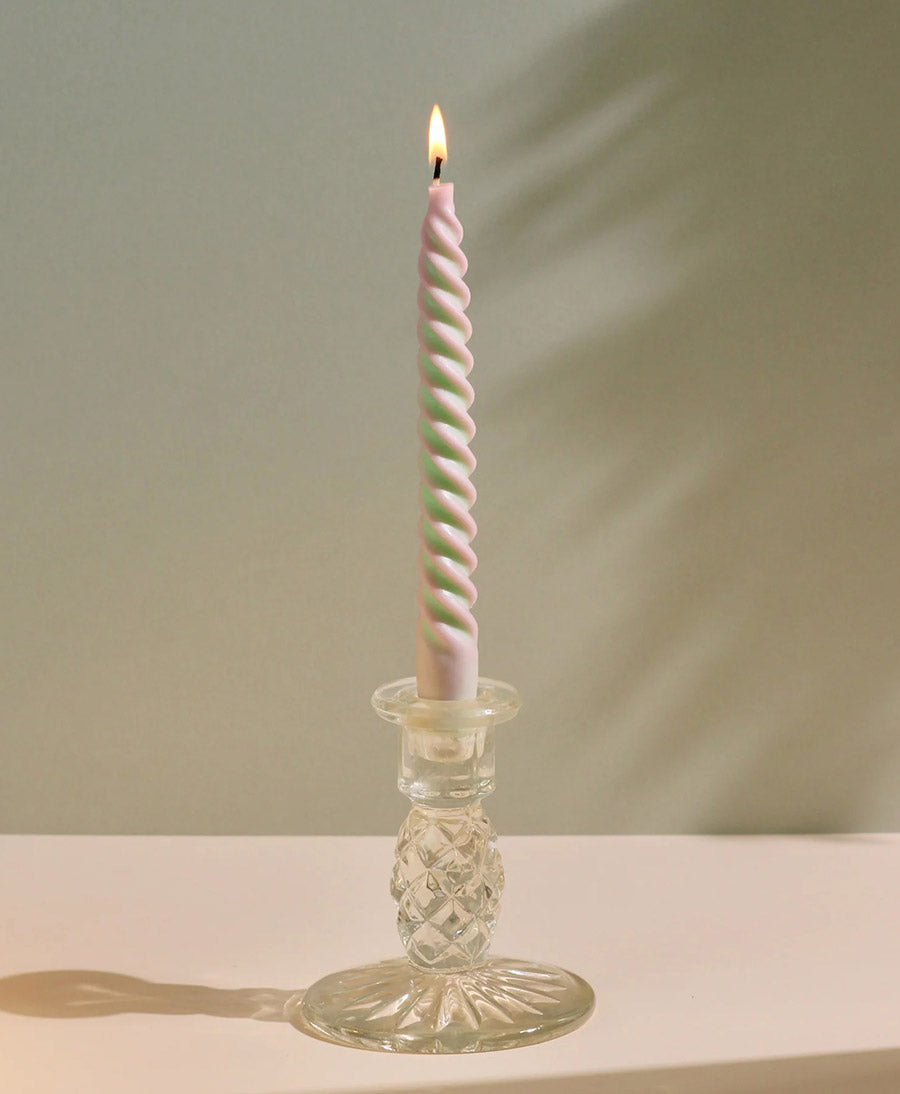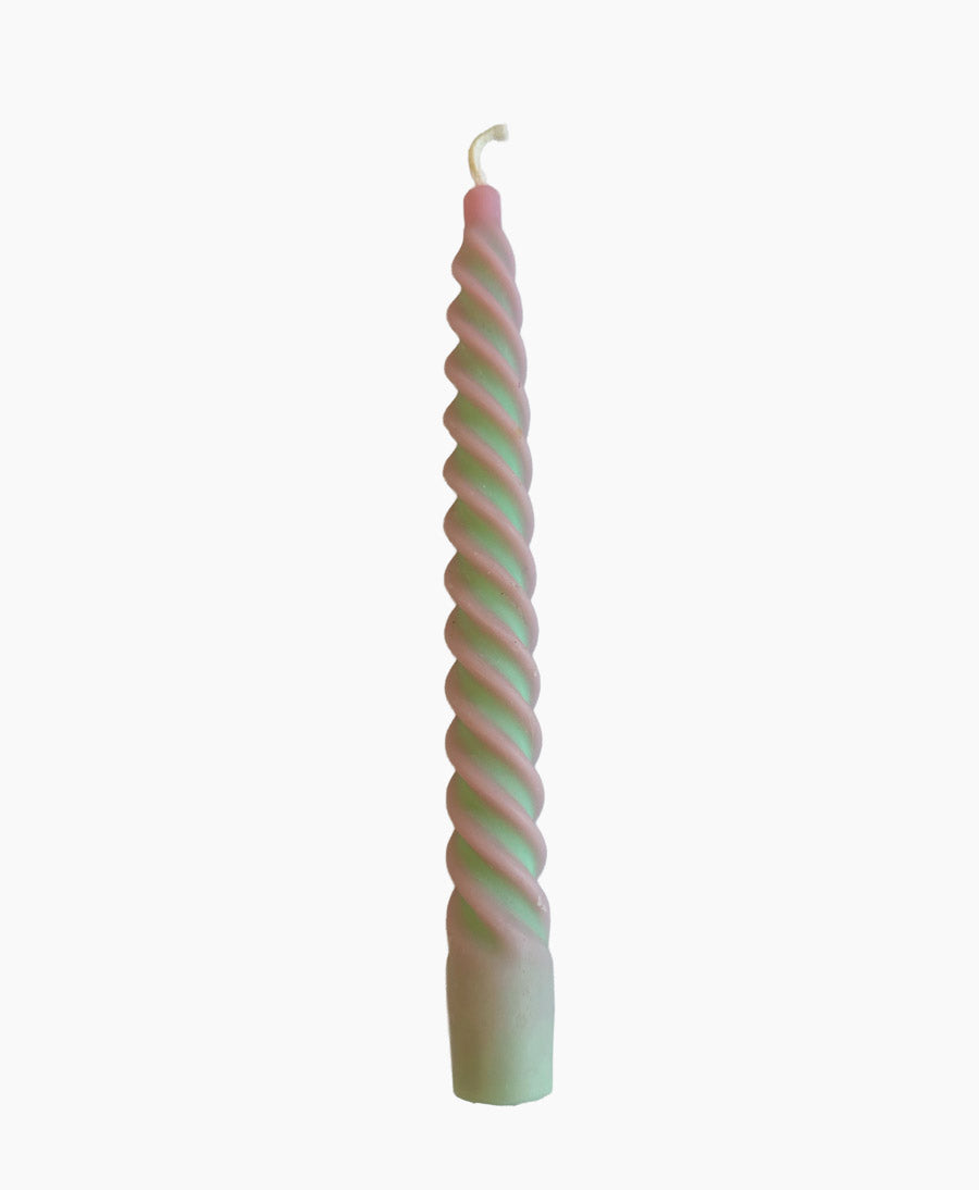 Spiral Stabkerze Zweifarbig - Pastellgrün / Rosa
