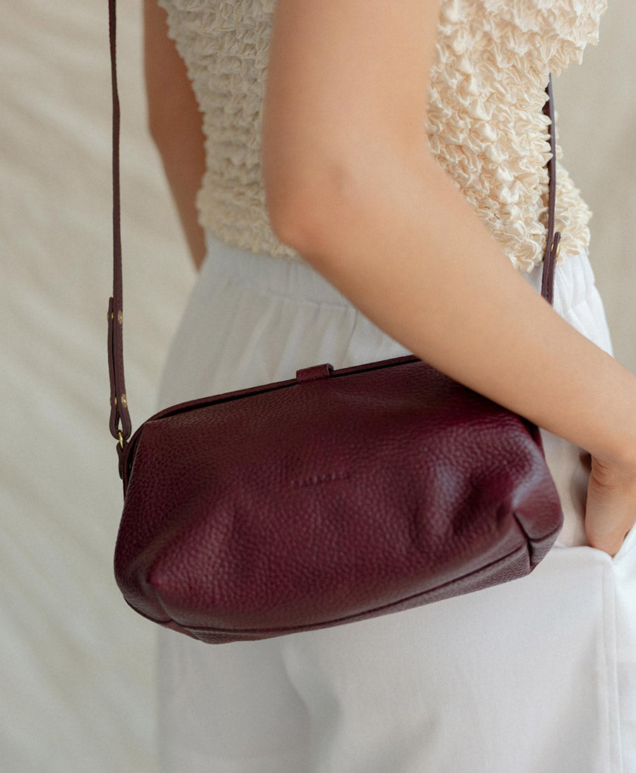Umhängetasche aus Leder "Rofe M" - Aubergine - Balagan