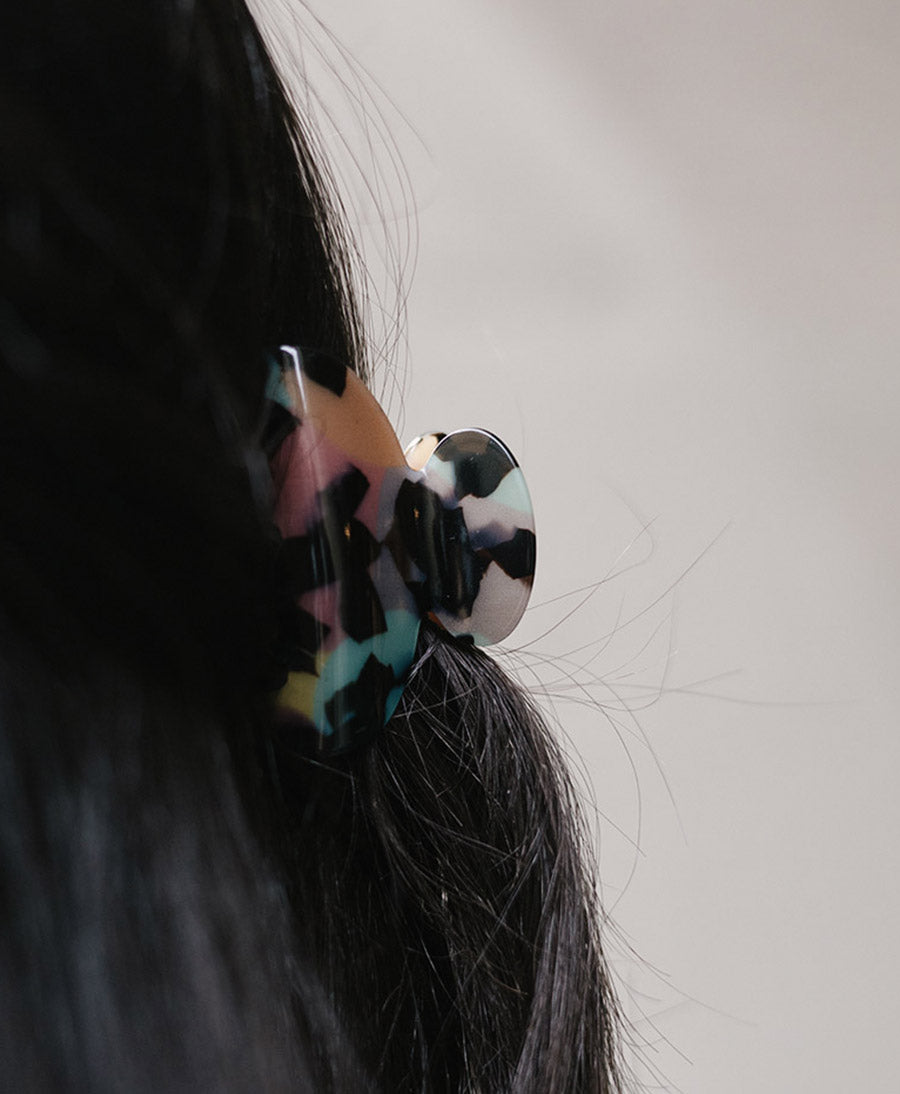 Haarklammer aus Acetat. Hergestellt in Frankreich, nahe der Grenze zur Schweiz.