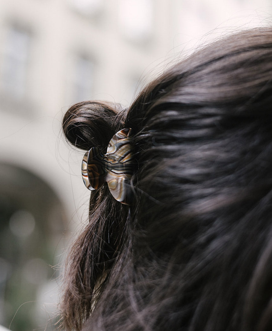 Haarklammer aus Acetat. Hergestellt in Frankreich, nahe der Grenze zur Schweiz.