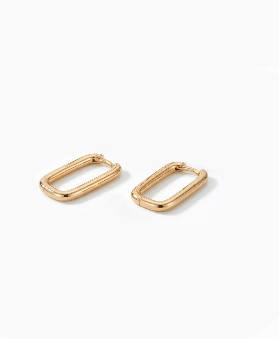 Diese langen ovalen / rechteckigen Ohrringe / Creolen aus vergoldetem Messing von Clomes werden von unserem Partner aus Paris mit viel Liebe und Sorgfalt in Thailand hergestellt. Die hochwertige Goldplattierung (3 Mikron) findet in Spanien statt.