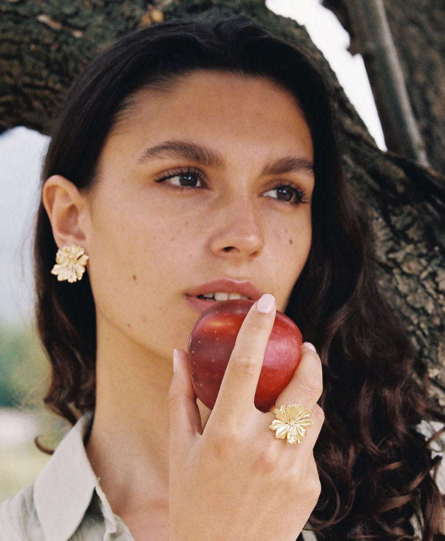 Agapée kommt in einer kostbaren 3-Mikron-Goldschicht, remixed und recycelt, aber immer wie neu glänzend. Das gesamte verwendete Gold stammt aus Ländern, die das Fair-Trade-Abkommen respektieren und den strengsten ethischen Gesetzen folgen. Jedes im Prozess verwendete Material ist recycelt, nickel- und bleifrei. Das Schmucklabel weiss, wie wichtig die Hautgesundheit ist, daher sind die Elemente nicht allergen und ihre wasserbeständige Politur hat einen Glanz, der lange hält.