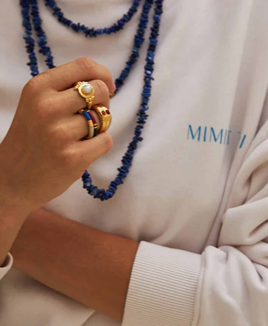 Farbiger Fingerring "Skylar" mit vergoldetem Element. Ein Farbtupfer aus der neusten Kollektion von Mimi et Toi.