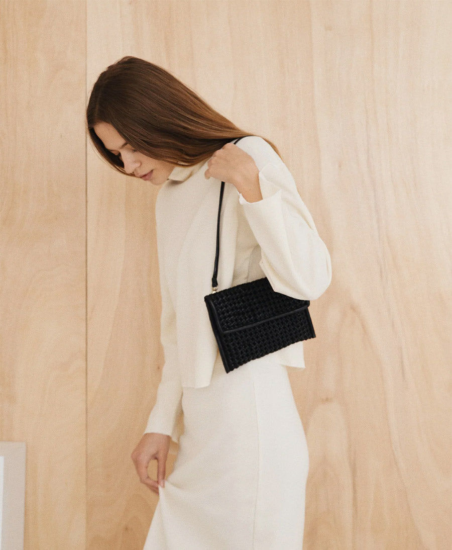 Gewebte Ledertasche / Clutch "LARITA" - Schwarz