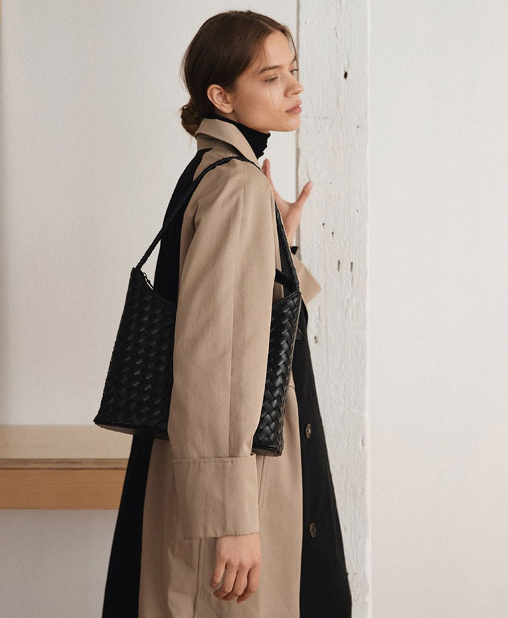 Gewebte Ledertasche "MARNI LARGE" von Bembien aus Rindsleder (schwarz)
