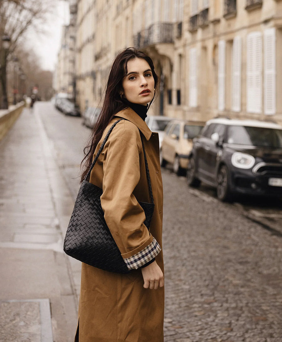 Gewebte Ledertasche "PAULINE" - Schwarz