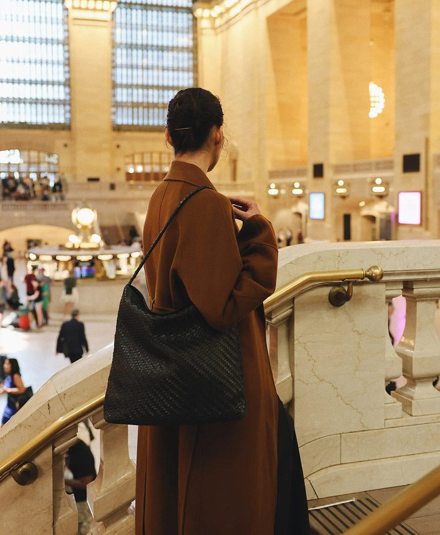 Gewebte Ledertasche "SERA" - Schwarz