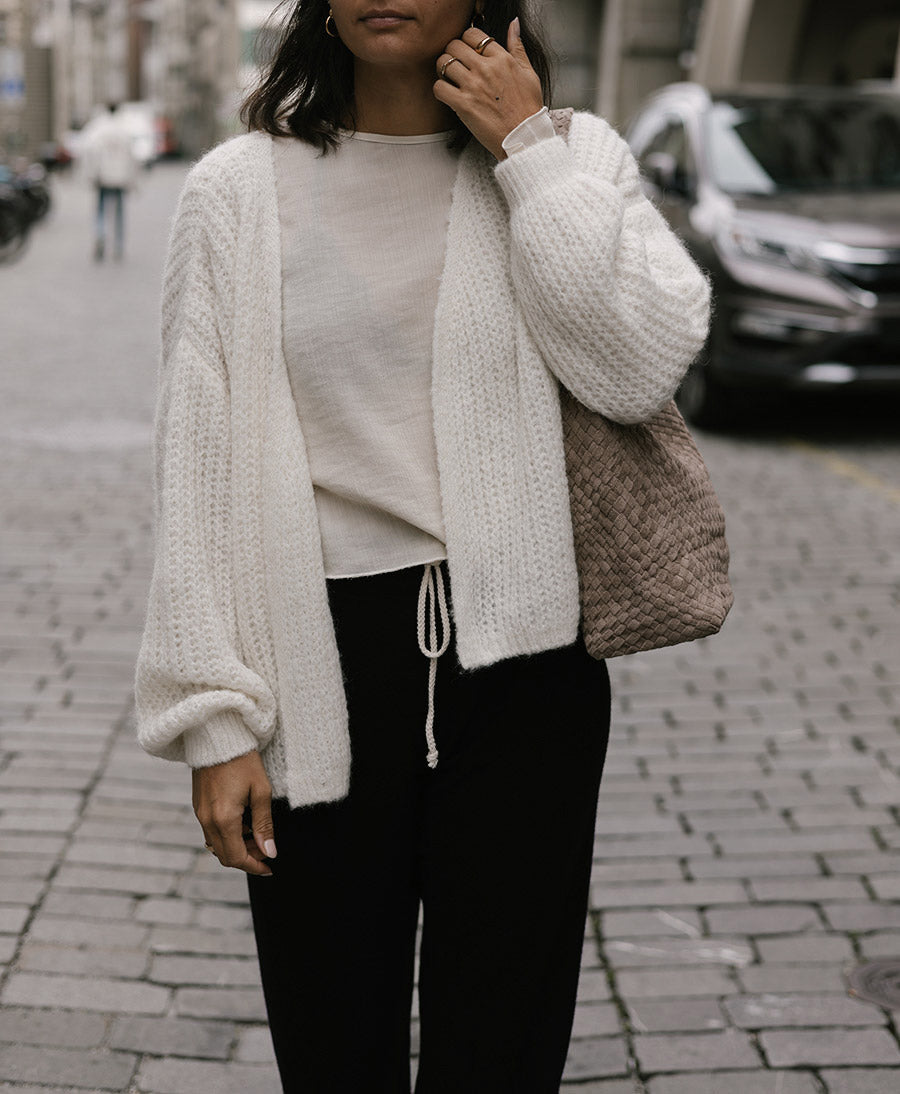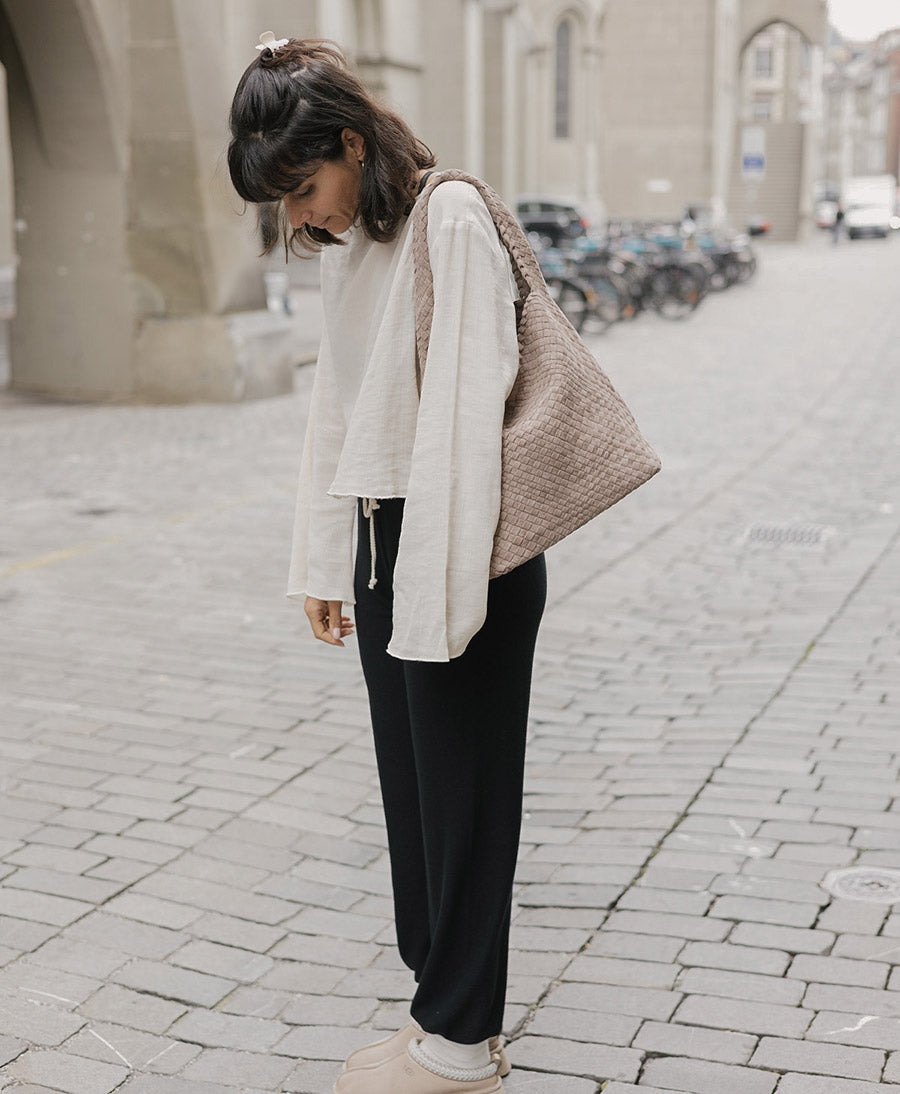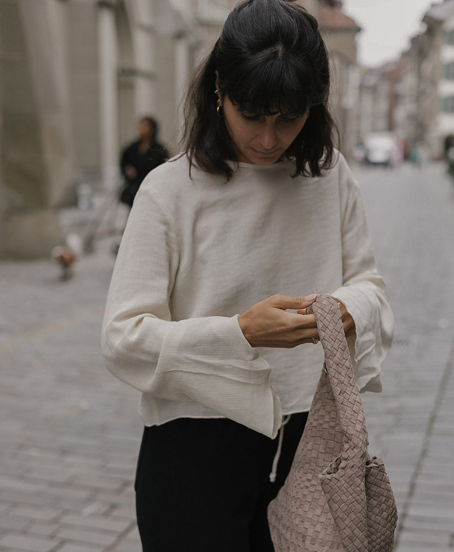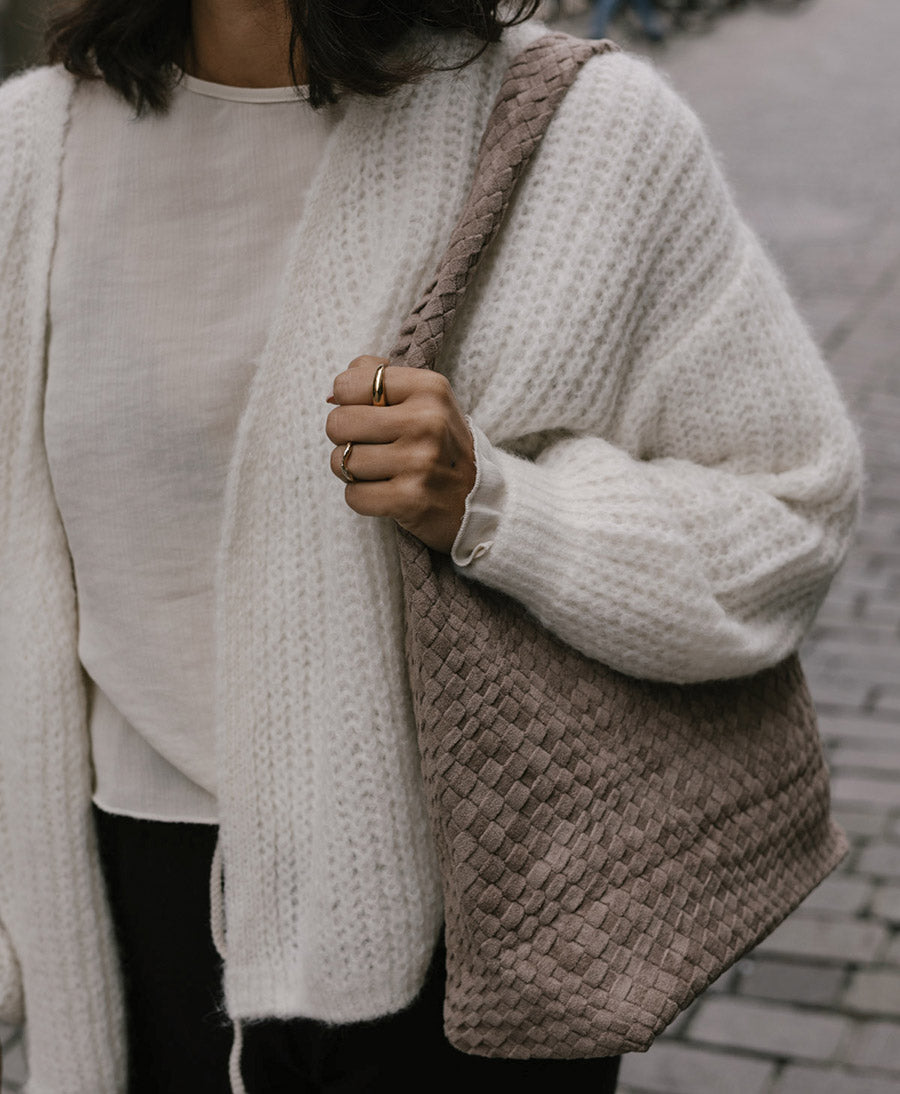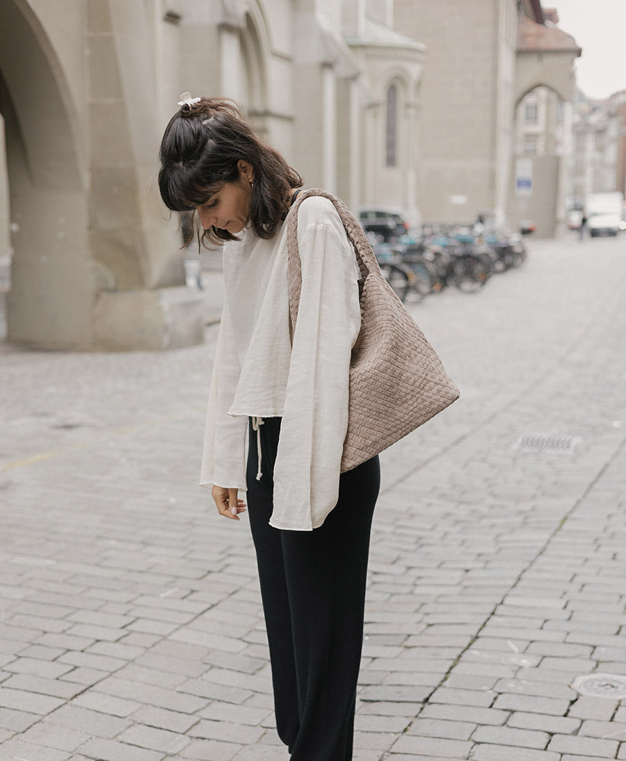 Gewebte Schultertasche aus veganem Leder von Melie Bianco in Clay Suede