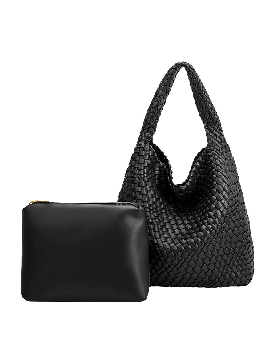 Gewebte Schultertasche aus veganem Leder von Melie Bianco in Schwarz