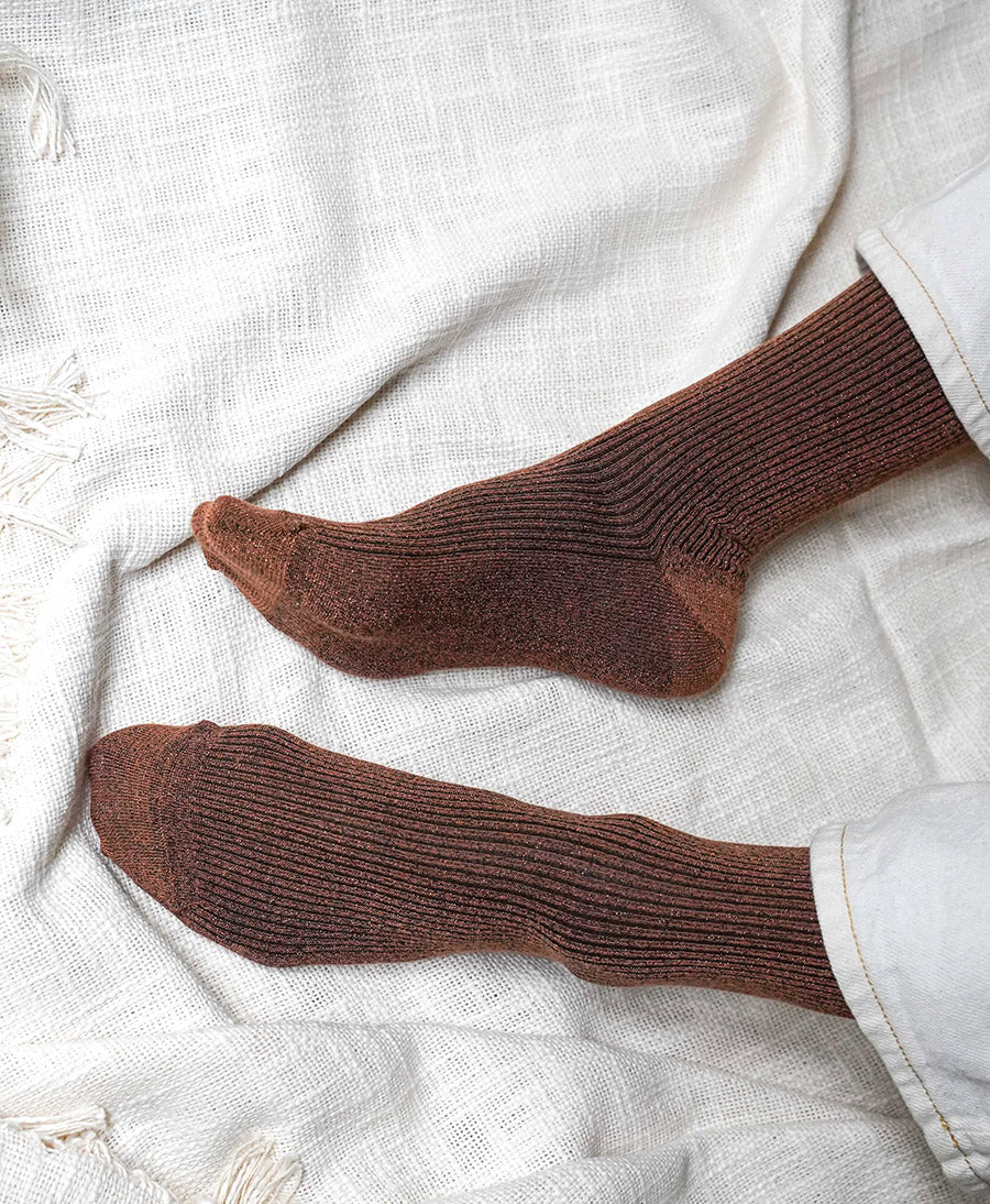 Entdecke unser neues Sortiment an Lurex-Socken mit farbigem Glitzer! Diese stylischen Socken bestehen zum Grossteil aus Lyocell-Bambusfasern, einer völlig natürlichen und ökologischen Faser. Lyocell ist ein unglaublich weiches und leichtes Material mit absorbierenden Eigenschaften und gleichzeitig extrem widerstandsfähig. Herstellungsland: Türkei