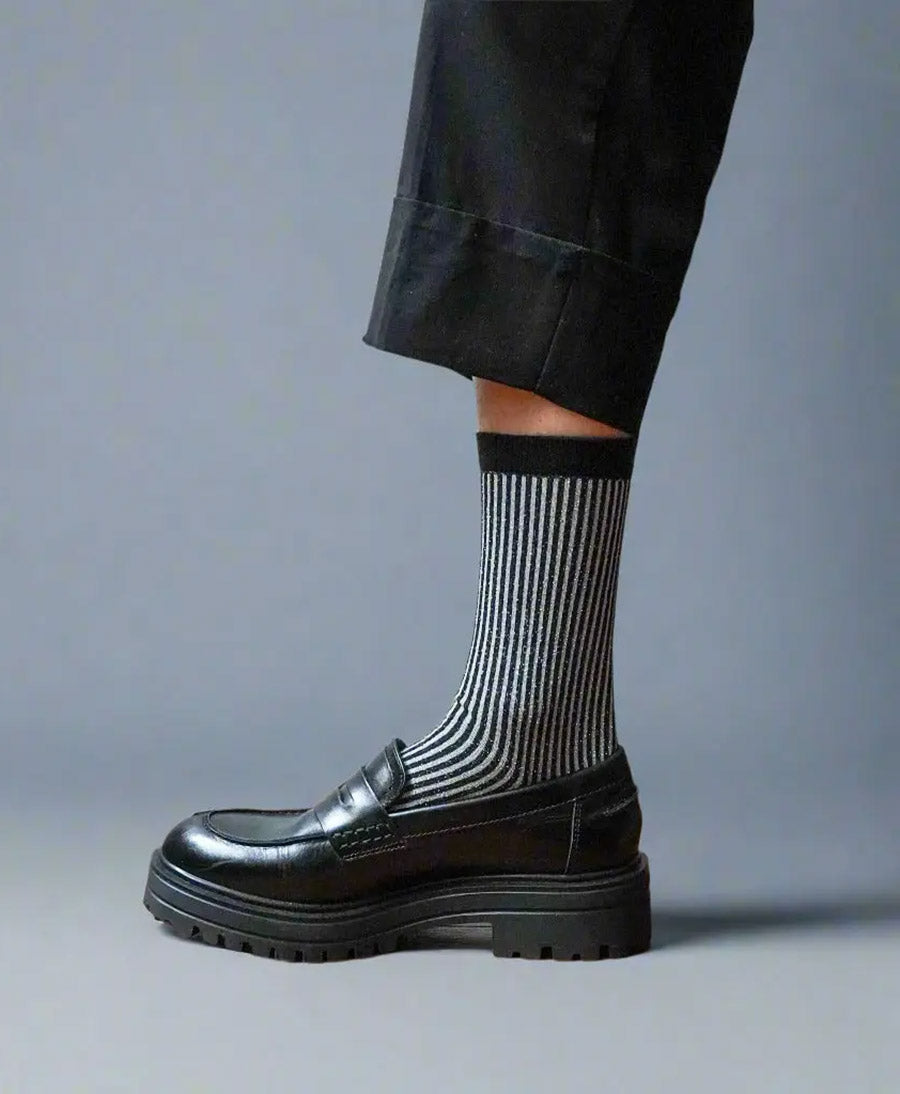Glitzer Socken Lyocell - Schwarz / Streifen