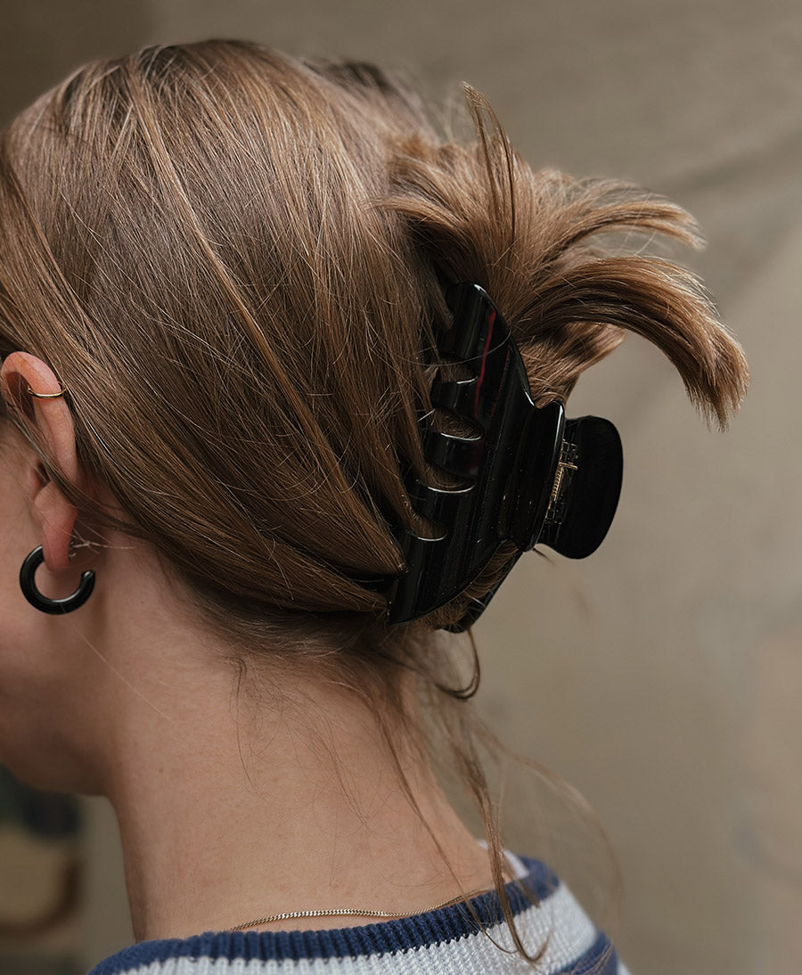 Schwarze Haarklammer aus Acetat. Hergestellt in Italien.