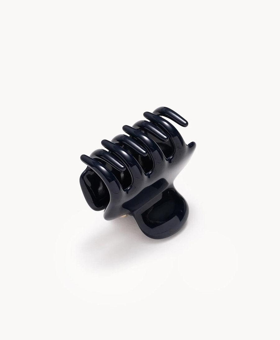 Diese wunderschöne Haarklammer / Claw Clip ist aus Resin gefertigt. Sie wird von Hand hergestellt in Italien. Das Material ist zu 100% rezyklierbar. Die uni Haarklammer kommt in schöner dunkelblauen Farbe daher und ist glänzend poliert.