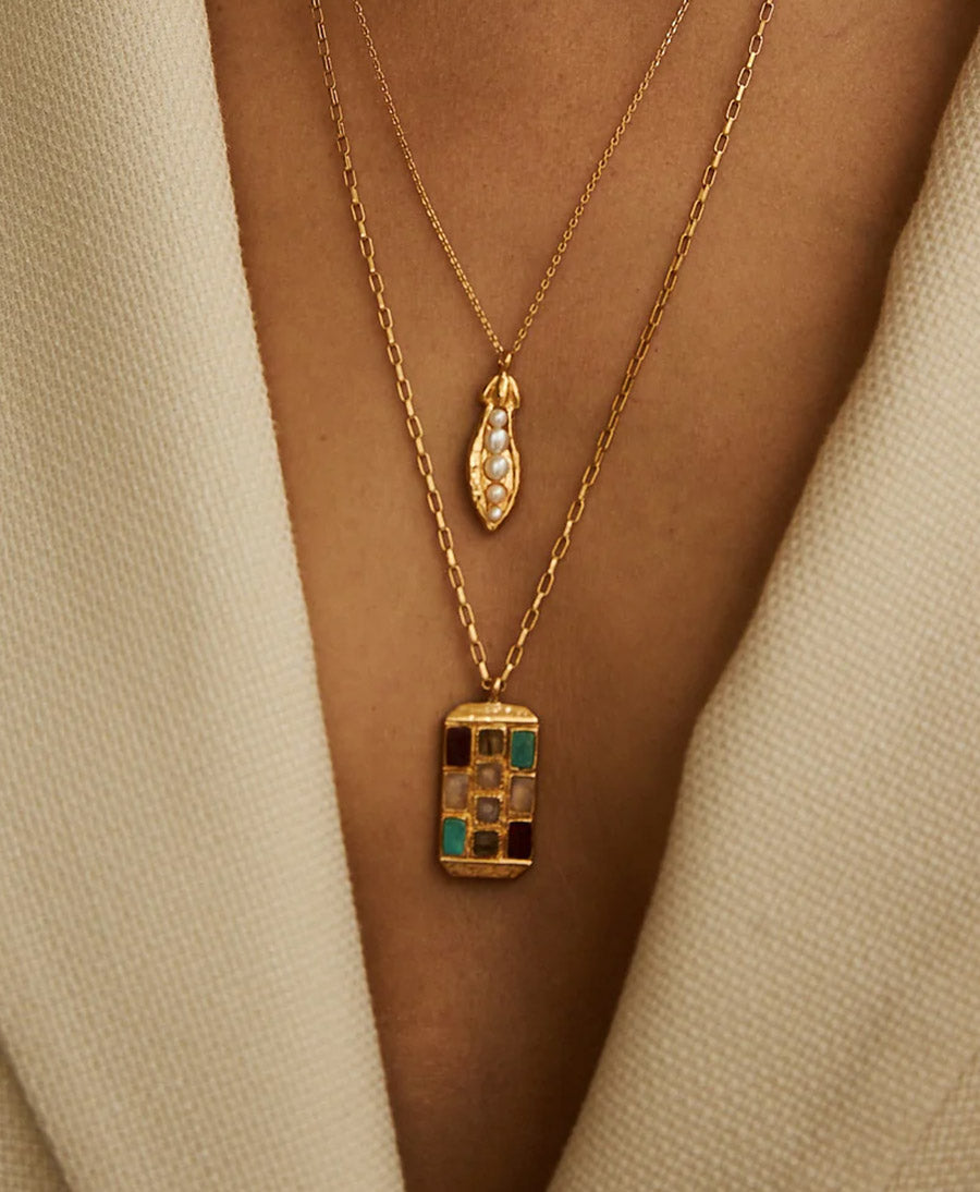 Diese Halskette aus der neuen La Mer-Kollektion ist eine zarte Harmonie aus Erde und Meer und besticht durch eine raffinierte Mischung aus Türkis, Mondstein und Karneol. Jeder Stein wurde sorgfältig aufgrund seiner lebendigen und dennoch sanften Energie ausgewählt – Türkis für Ruhe, Mondstein für Intuition und Karneol für Wärme. Auf einer minimalistischen Kette aufgefädelt, verleiht dieses Schmuckstück Ihrem Alltagsstil Farbe und Bedeutung.