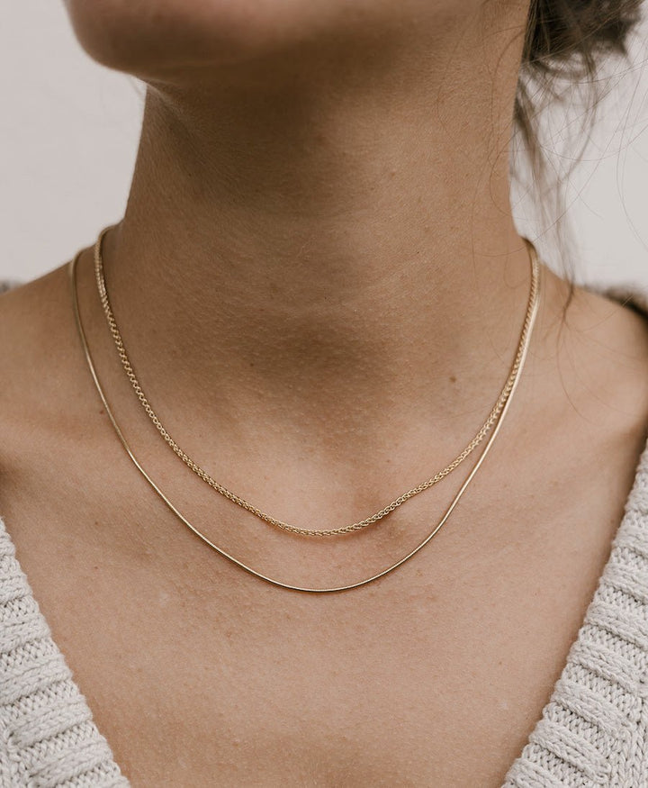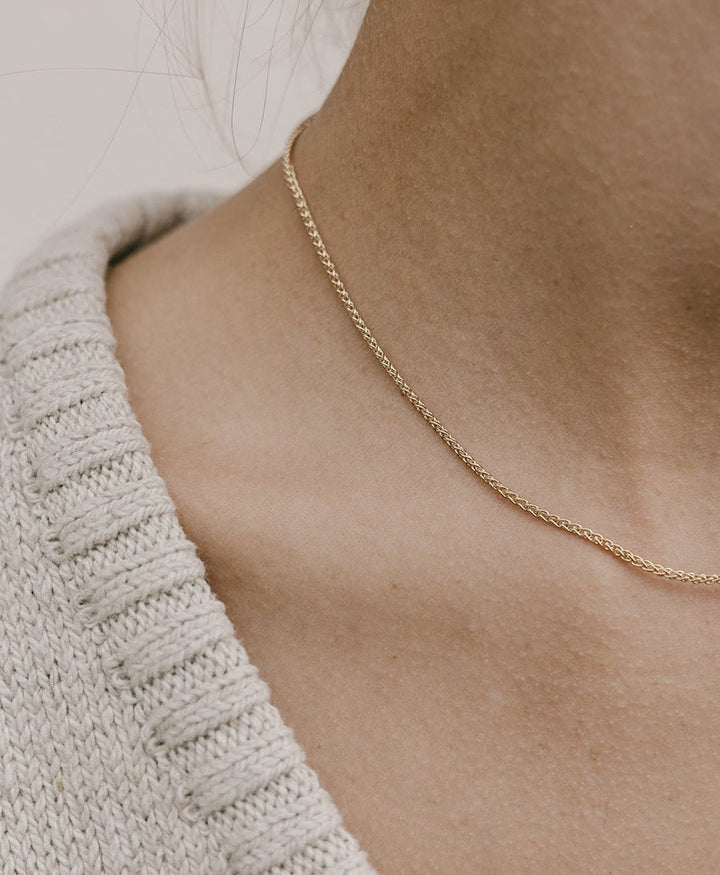 Diese moderne Halskette (Zopfkette) wird aus Vermeil (vergoldetes Sterling Silber) hergestellt. Ein echter Klassiker in einer zeitlosen, kurzen Länge. Die Kette hat keinen Anhänger und eignet sich perfekt um mehrere Ketten zusammen zu tragen. Die Oberfläche ist auf Hochglanz poliert.
