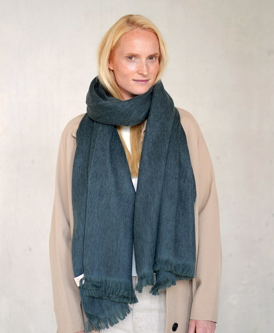 Im Gegensatz zur Schafwolle ist die Alpakafaser viel weicher und enthält kein Lanolin mit dem schönen Nebeneffekt, dass sie von Natur aus hypoallergen ist. Um die Bufandy-Schals noch weicher zu machen, werden die Fasern am Ende des Webvorgangs durch Bürsten aufgeraut. Dadurch werden die Schals besonders weich und fühlen sich auf der Haut einfach toll an.