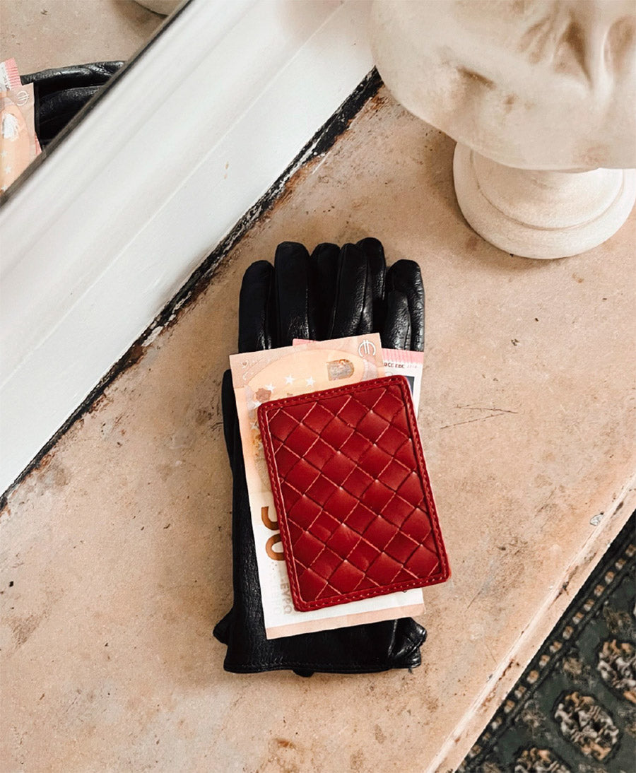 Gewebtes Kartenetui "NICO" von Bembien aus Rindsleder (Rouge / Dunkelrot)