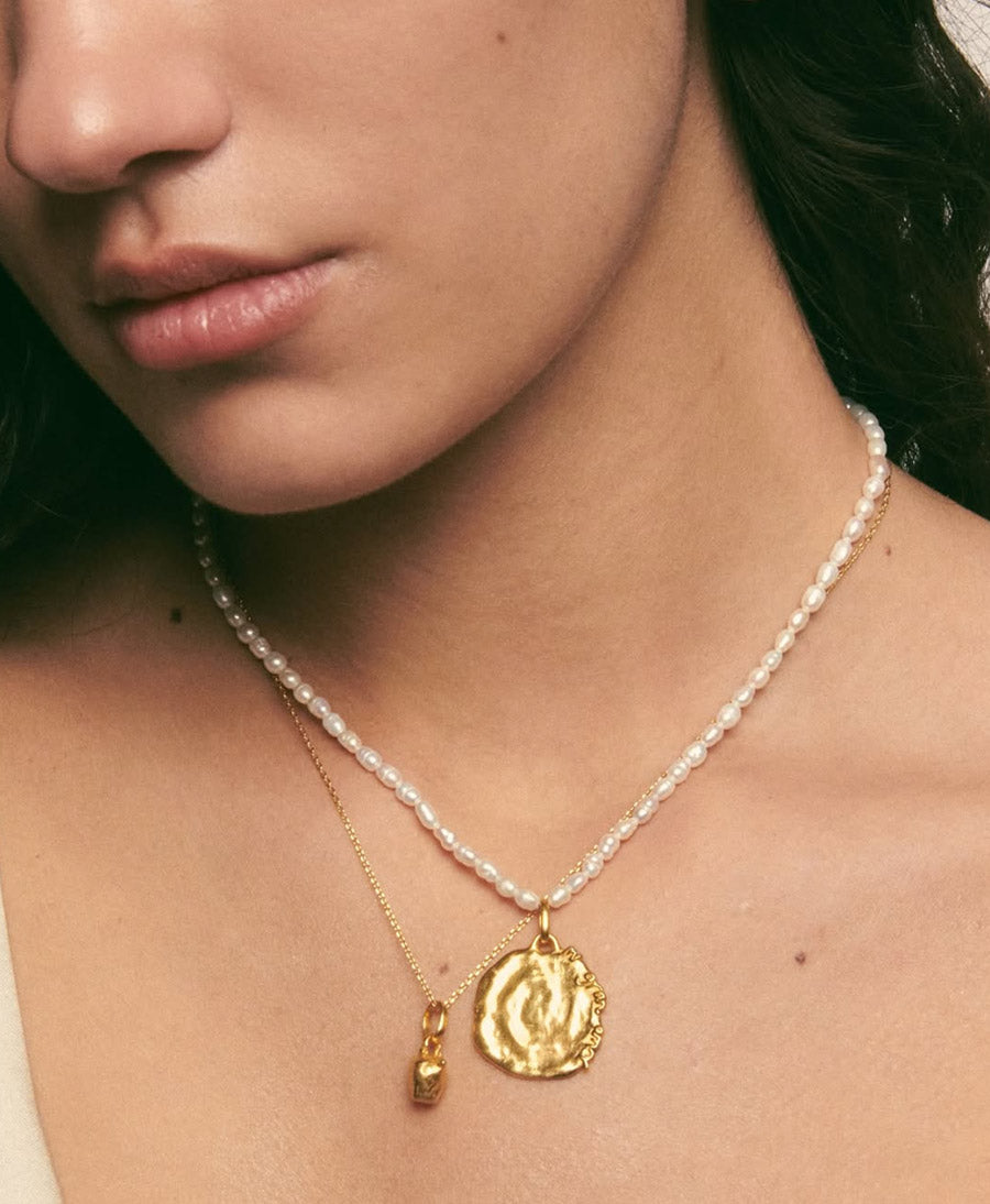 Sie integrieren Zuchtperlen in ihre Designs und schaffen so eine Verbindung zwischen Klassik und Moderne. Kristalle und Halbedelsteine begleiten den Träger und spenden ihm dieselbe schützende Energie, die schon unsere Vorfahren suchten. Mehr als 90 % der Kollektion, die mit 3 Mikron 18-karätigem Gold überzogen oder aus 925er Sterlingsilber gefertigt ist, wird in Fabriken und Werkstätten in Spanien hergestellt, wodurch die Authentizität und hochwertige Handwerkskunst gewährleistet sind, die den Brand auszeichnen.