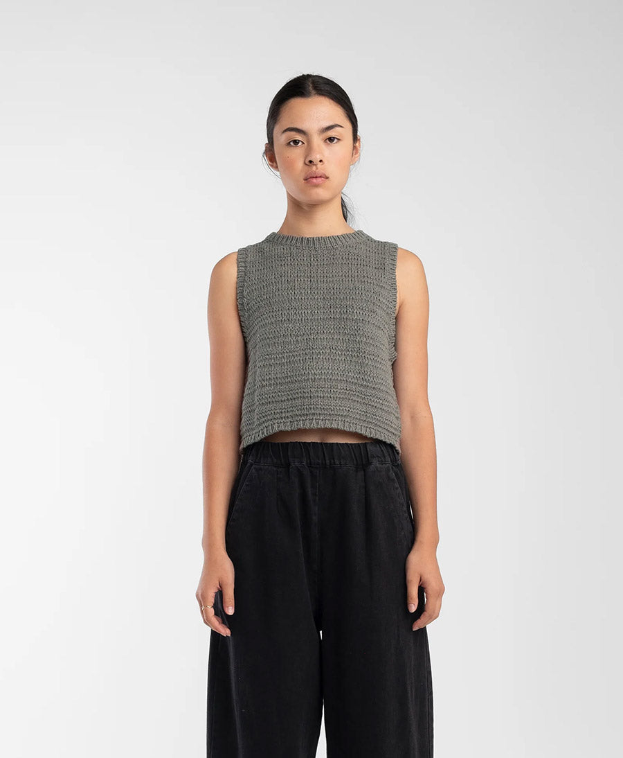 Dieses schöne Stricktop von Micaela Greg wird aus hochwertiger Baumwolle in Peru hergestellt. Schlichtes, süsses, feminines Crop-Tank. Gefertigt aus hochwertigem, mittelschwerem Garn mit schöner Textur. Gerade Passform und Rundhalsausschnitt. Gerippt an Saum, Hals und Armöffnungen.