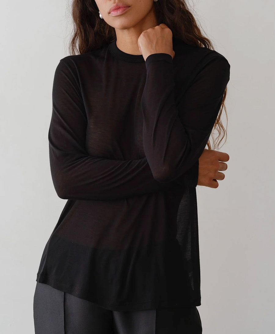 Langarm aus Modal & Seide - Jersey - schwarz