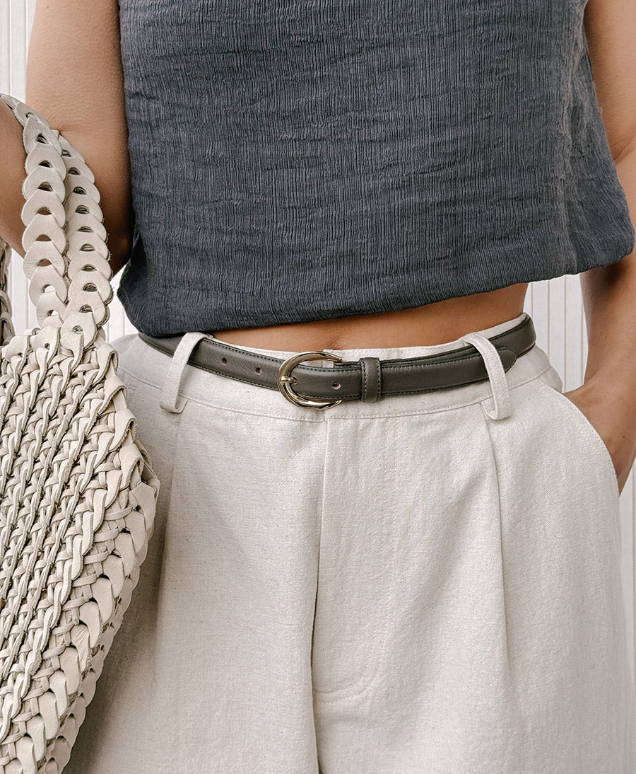 Ledergürtel LOUISA mit goldiger Schnalle - Asche