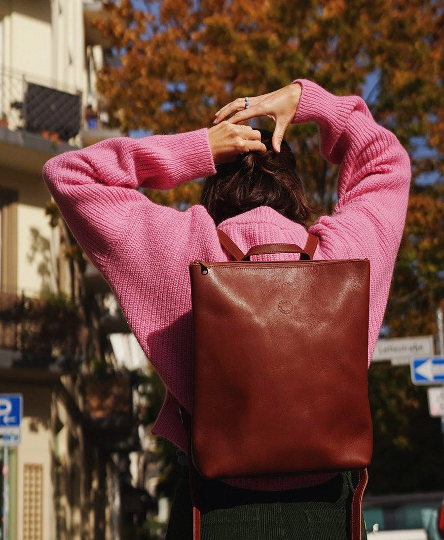Rucksack aus braunem Leder von Marin et Marine. Handgefertigt in Berlin.