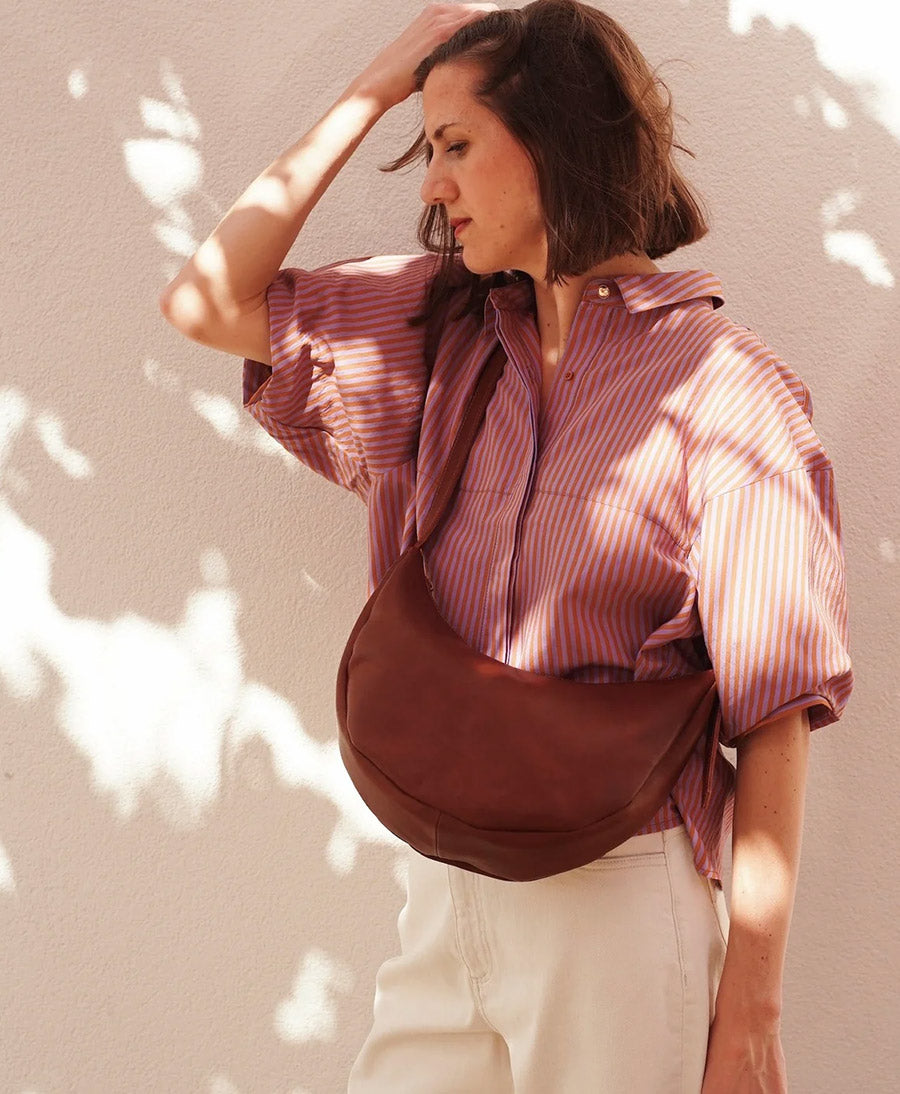 Lune Bag Bauchtasche aus braunem Leder von Marin et Marine. Handgefertigt in Berlin.