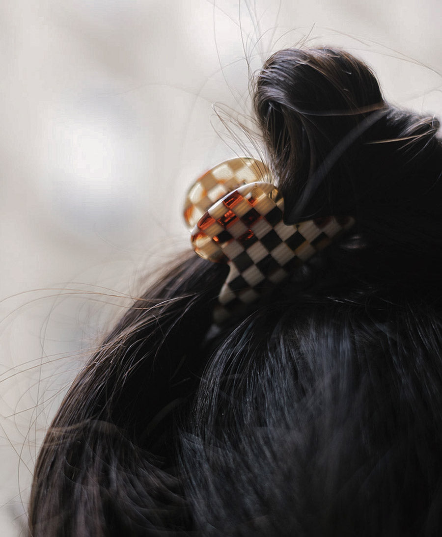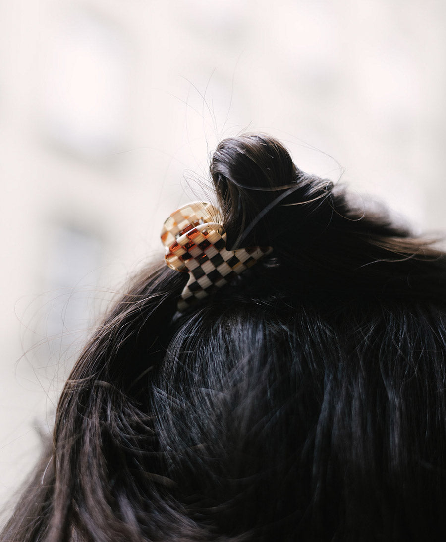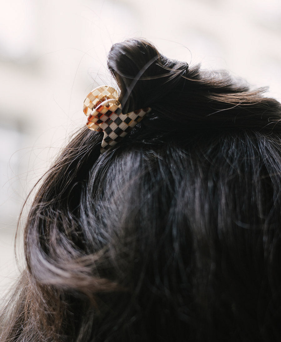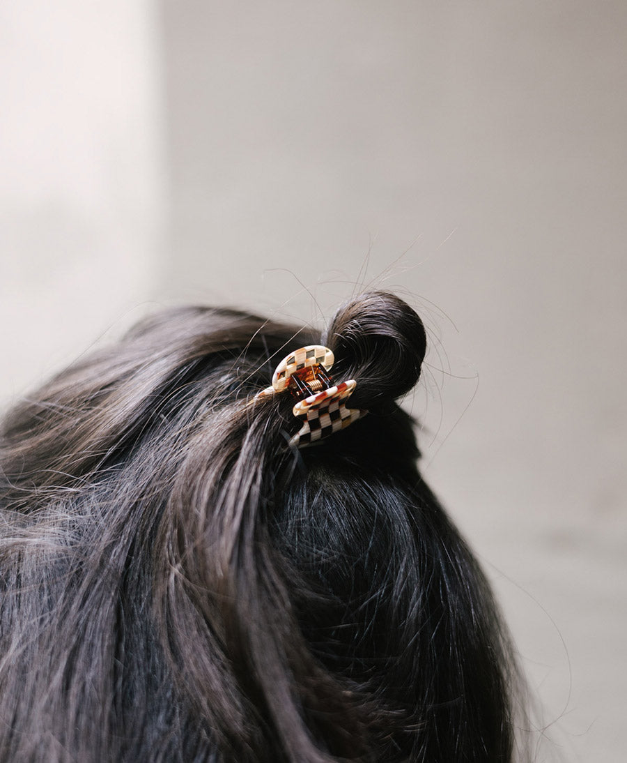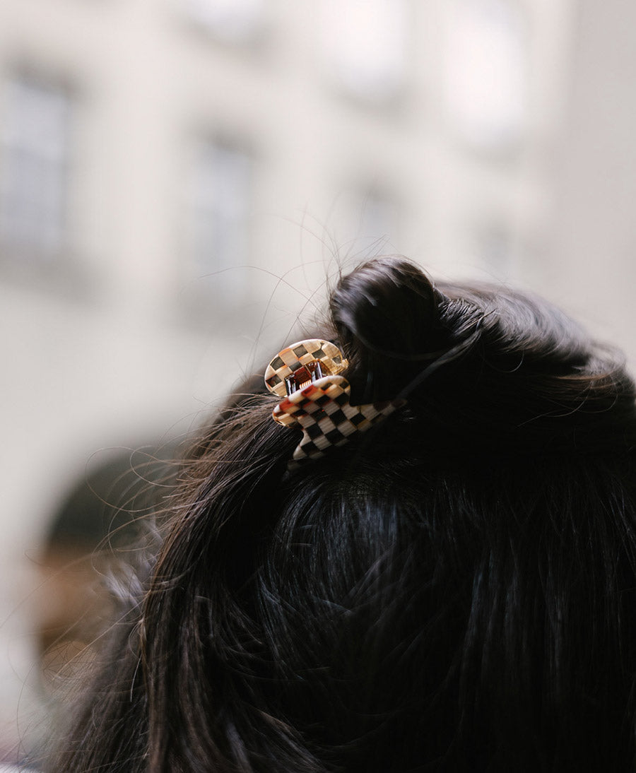 Mini Haarklammer / Haarclip "Carmella" S aus Acetat in Karo