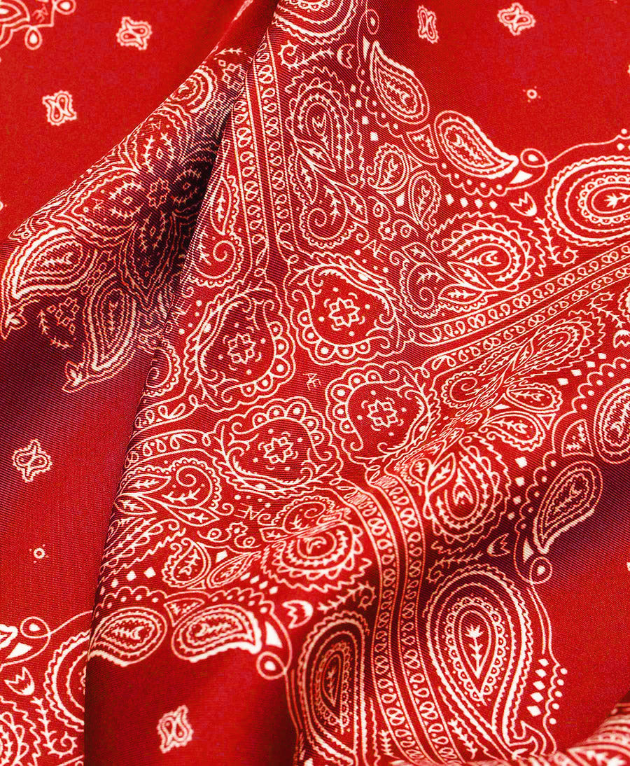 Nahe der Schweizergrenze In Como (Italien) von Hand hergestellter Seidenschal / Foulard von AENEIS. Mit zeitlosem Bandanamuster.