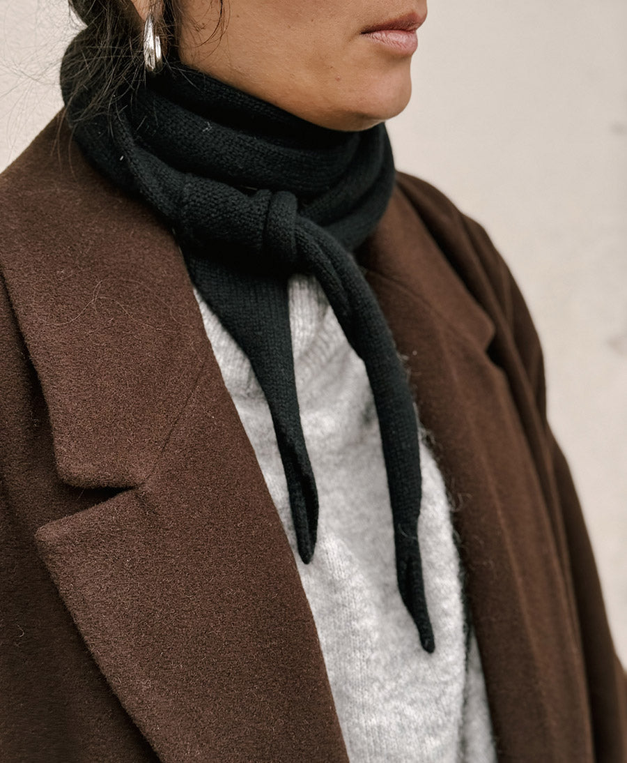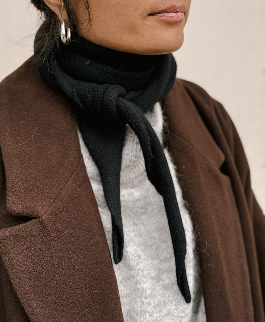 Wundervoller und bequemer kleiner Strickschal (Triangel) oder Bandana in schwarz aus purem Kaschmir.