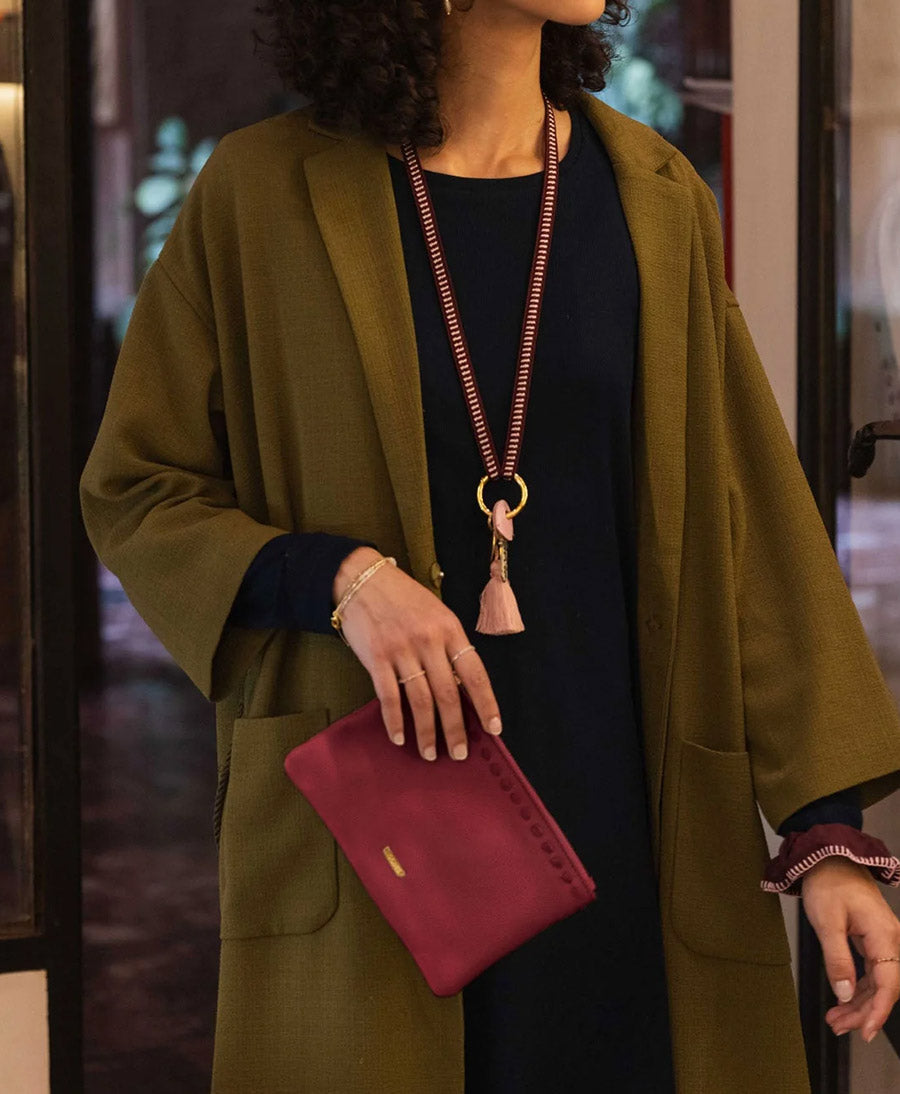 Mini Pouch aus Leder NAIMA - Dunkelrot