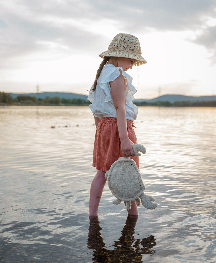 Ein treuer Freund & Wegbegleiter durch die Kindheit. Die kleine Krabbe ist ein echter Charakter: verspielt, kuschelig und voller Charme. Gefertigt aus GOTS-zertifiziertem Bio-Baumwollplüsch und reiner Schafschurwolle, bringt sie mit ihrem herausnehmbaren Traubenkernkissen natürliche Wärme oder angenehme Kühlung. Ein treuer Begleiter, der handgemachte Qualität und liebevolles Design in deinen Alltag bringt.