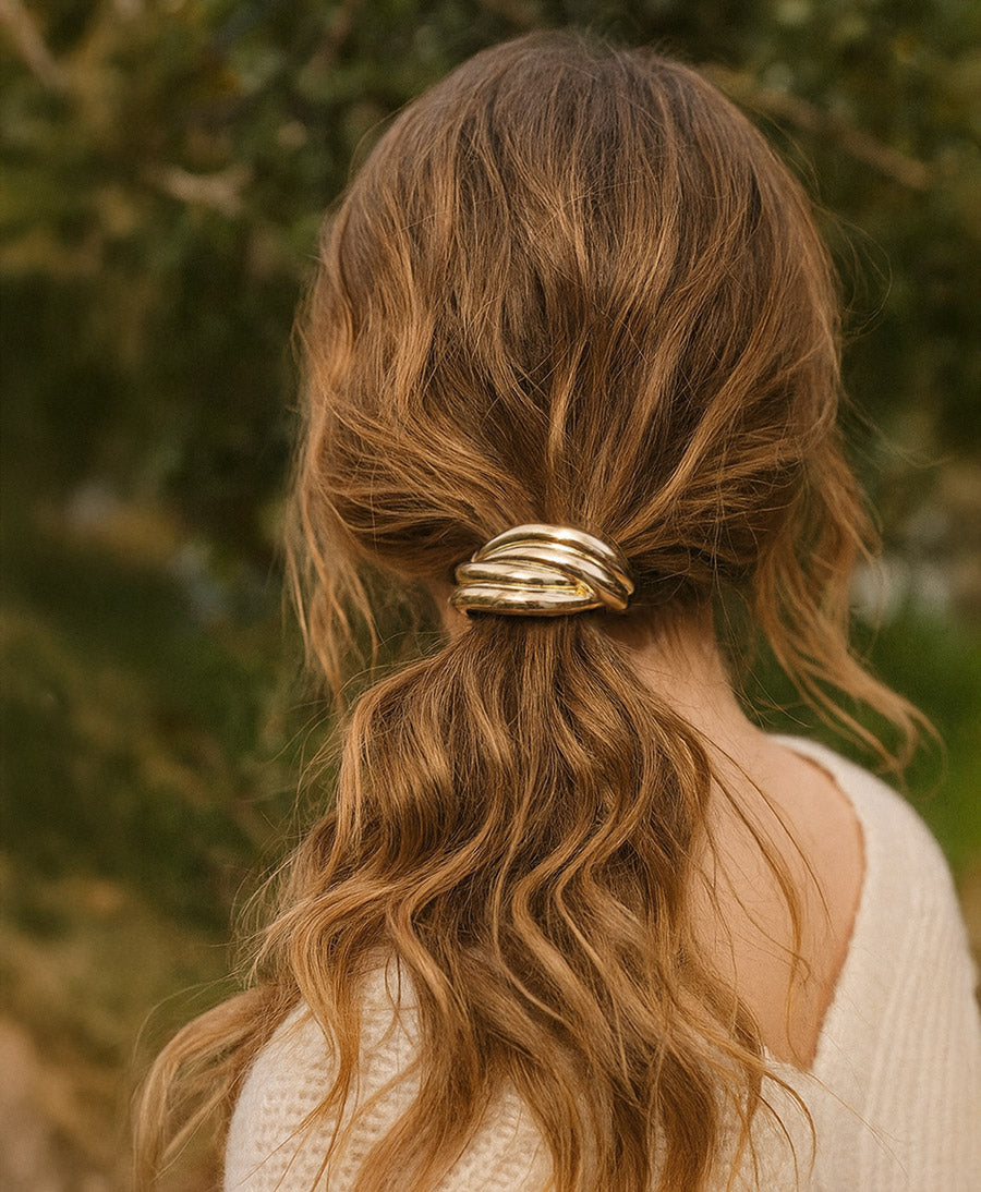 Dieses einzigartige Haargummi aus Messing von Clomes wurde von unserem Team in Bern designed und in Norditalien in einem kleinen familiären Goldschmied-Atelier in Handarbeit gefertigt.