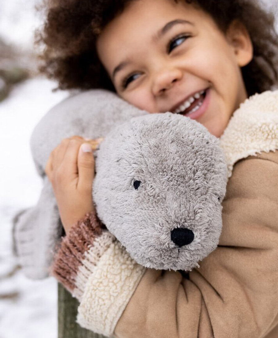 Robbe (gross) Kuscheltier & Wärmekissen - grau