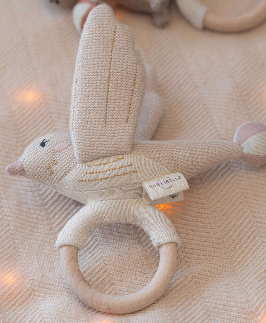 Babyrassel mit Holzring - Sandy der Vogel