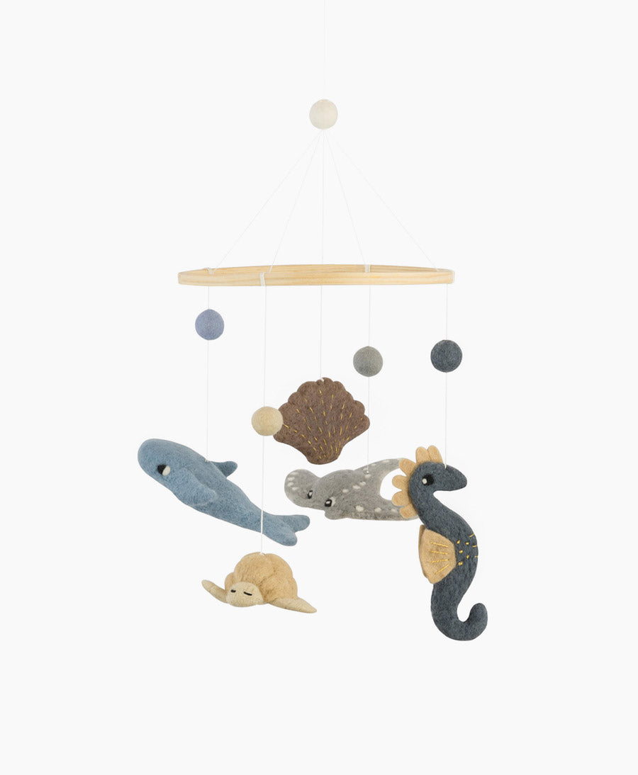 Dieses wunderschöne, stimmungsvolle Mobile mit Meerestieren und Muschel wird aus Filz hergestellt. Mit seinem charmanten Design hilft es beim Entspannend, Entdecken und beim Einschlafen.