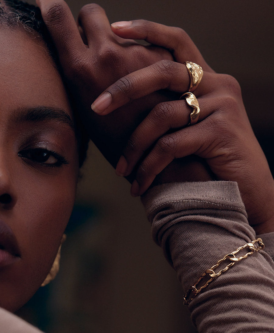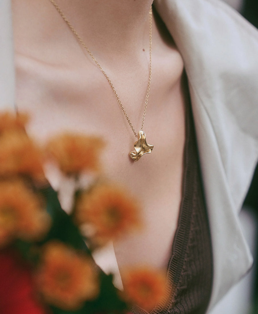 Die Schmuckstücke werden in einem kleinen Atelier in Paris von Hand gefertigt. Alle Schritte, vom Entwurf bis zur Vergoldung, finden direkt vor Ort statt. Louise Damas arbeitet mit recycelten Materialien wie Zinn, Messing und zertifiziertem Gold. Die Marke verzichtet auf Massenproduktion und entwirft zeitlose Kollektionen, die über Jahre hinweg relevant bleiben.