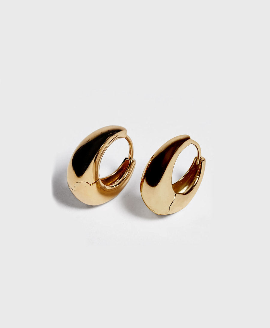 Schöne breite Ohrringe mit Klappverschluss von Huguette Paris. Die Ohrringe sind aus Messing von Hand gefertigt und hochwertig vergoldet (3 Mikron). Hergestellt in Italien.