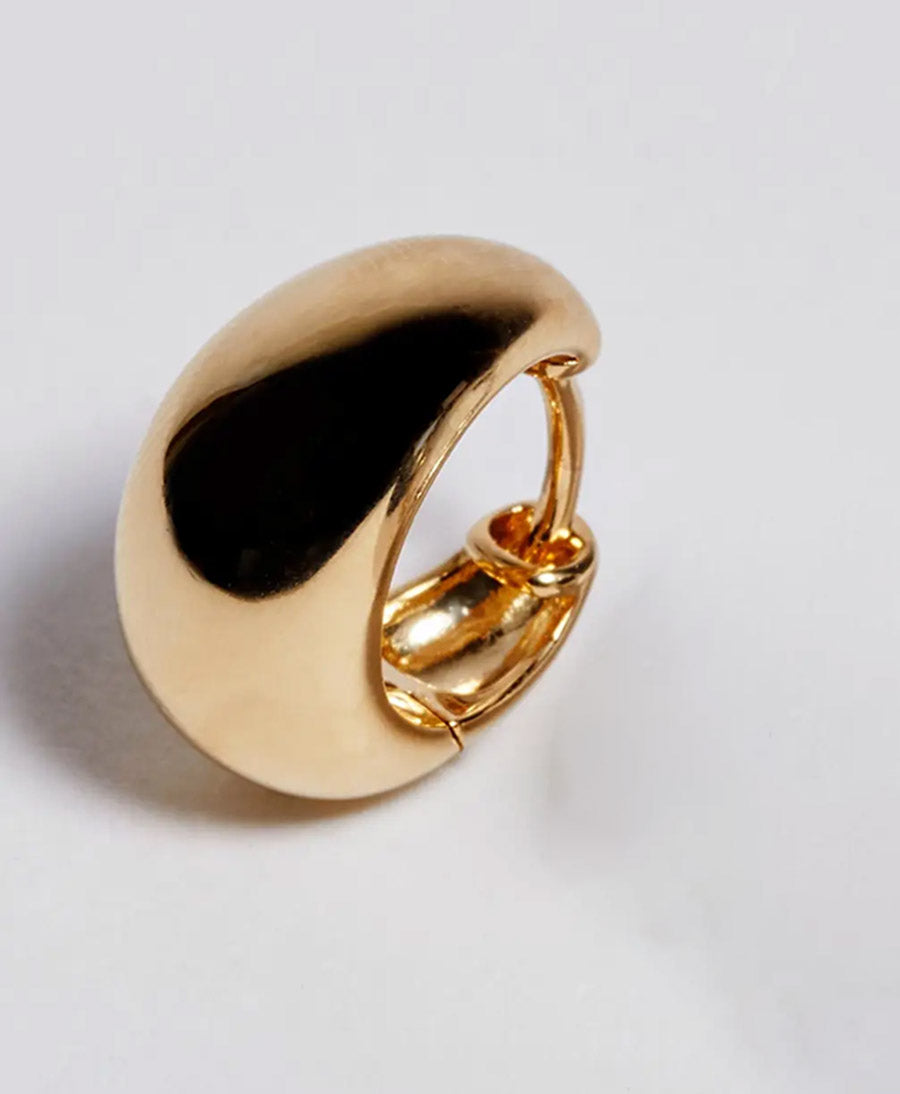 Schöne breite Ohrringe mit Klappverschluss von Huguette Paris. Die Ohrringe sind aus Messing von Hand gefertigt und hochwertig vergoldet (3 Mikron). Hergestellt in Italien.