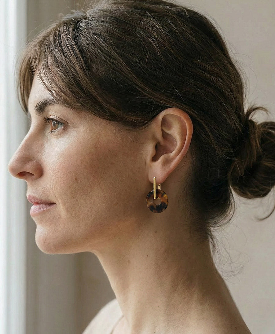 Ein Highlight sind unsere modularen Ohrringe mit austauschbaren Anhängern aus Acetat. Diese Trendstücke lassen sich individuell kombinieren und passen sich deinem Look an, egal ob schlicht oder verspielt. Besonders beliebt: Acetat-Anhänger in modernen Farben, die an Creolen getragen werden.