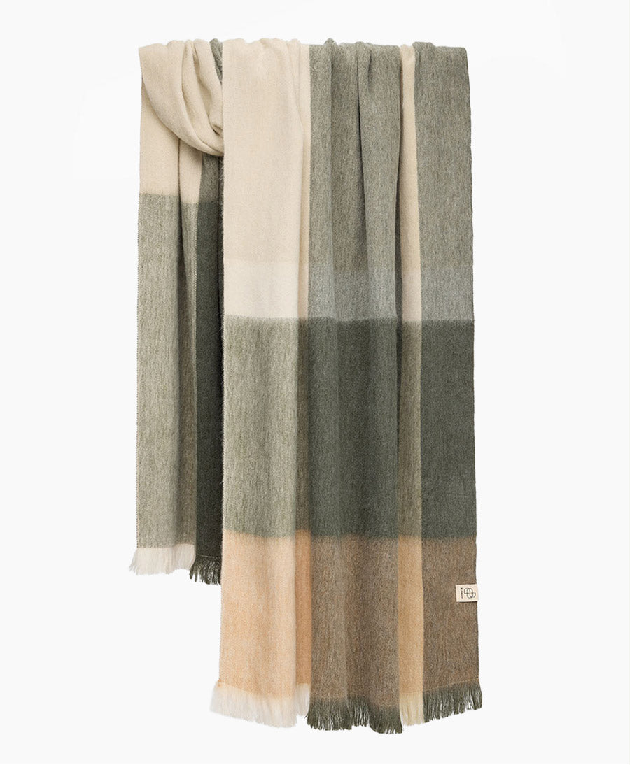 Dieser wunderschöne Schal ist sowohl stilvoll als auch zeitlos. Die Karo-Modelle haben einen schönen, subtilen Farbverlauf über die gesamte Länge des Schals mit einem schlichten Karo-Muster. Die Farbe geht von einem dezenten Grün in Beige, Hellbraun und Cremetöne über.