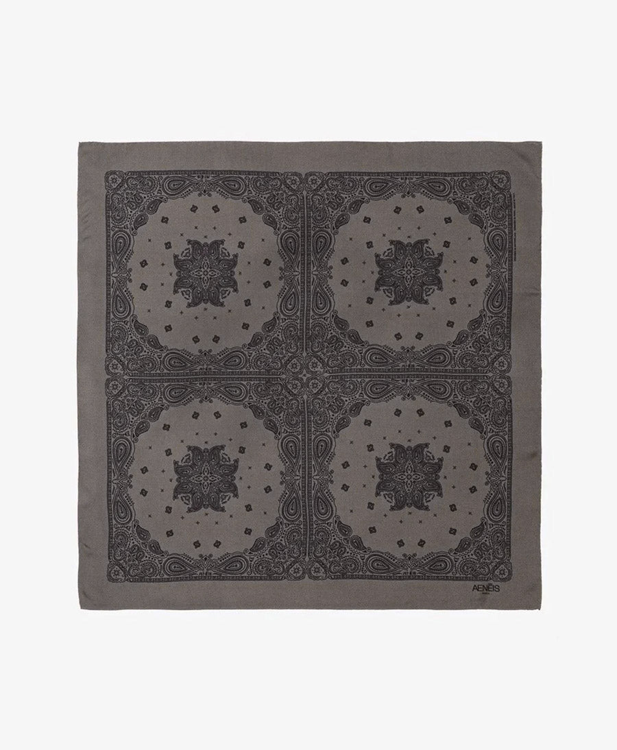 Nahe der Schweizergrenze In Como (Italien) von Hand hergestellter Seidenschal / Foulard von AENEIS. Mit zeitlosem Bandanamuster.