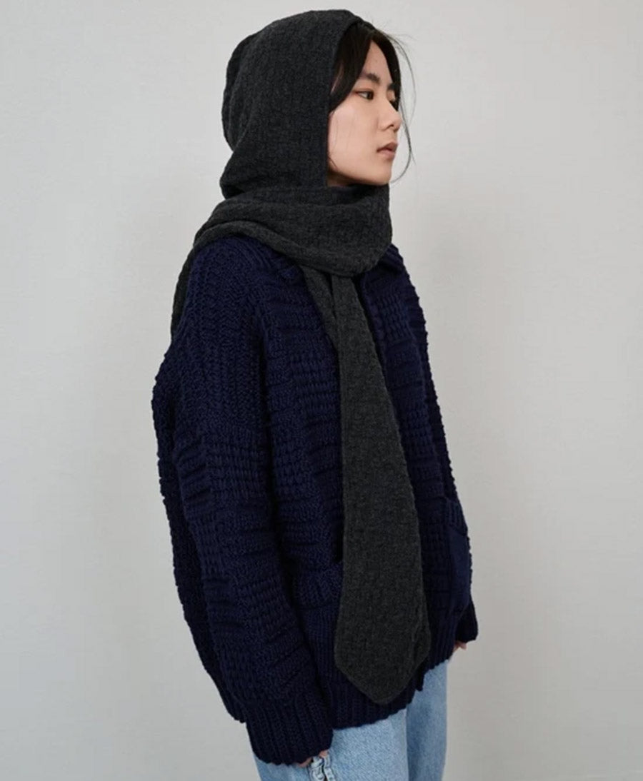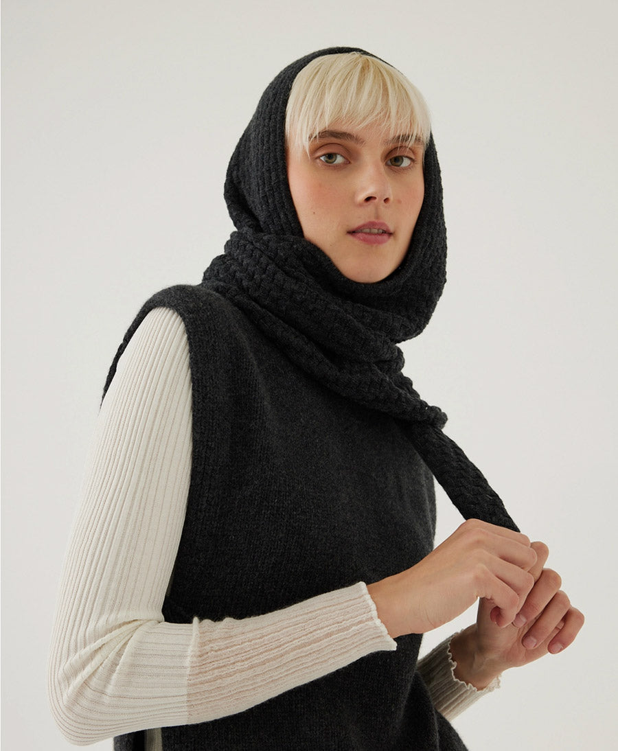 Kapuzenschal aus Strick - Anthrazit