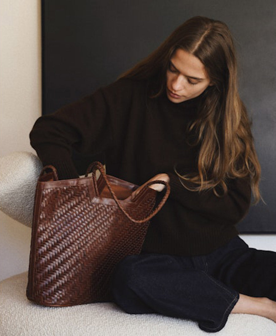 Gewebte Ledertasche "Camilla Large" von Bembien aus Rindsleder (Sienna / Braun)