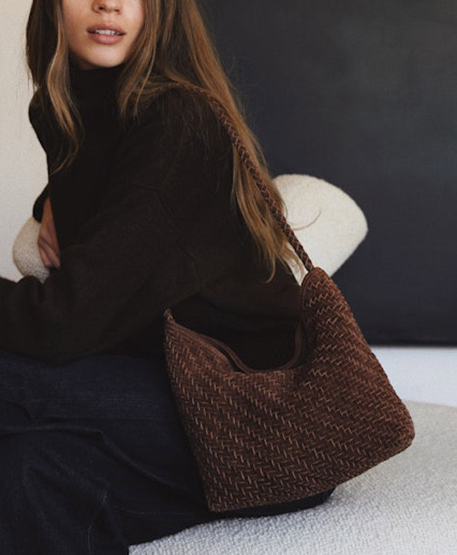 Gewebte Ledertasche "SERENA" Suede - Braun