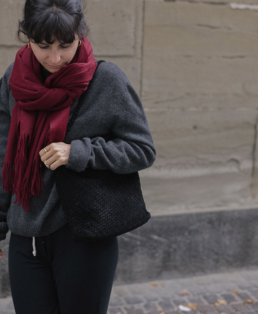 Diese gewobene Ledertasche aus der neuen Kollektion von Bembien ist ein echtes Lieblingsstück. Das nostalgische und verspielte Design wird in traditioneller Handwerkskunst perfektioniert. Die organische, schlanke Form passt perfekt für den Alltag und für viele Anlässe. andgefertigt aus weichem, gewebtem Leder. Die Oberseiten lassen sich umklappen und mit einem Magnetverschluss verschliessen. Bietet komfortablen Platz für dein Tablet. Handgewebt in Indien.