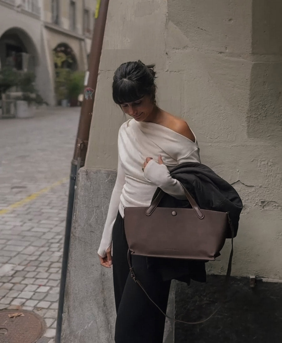 Handtasche JIL aus veganem Leder - Dunkelbraun Suede